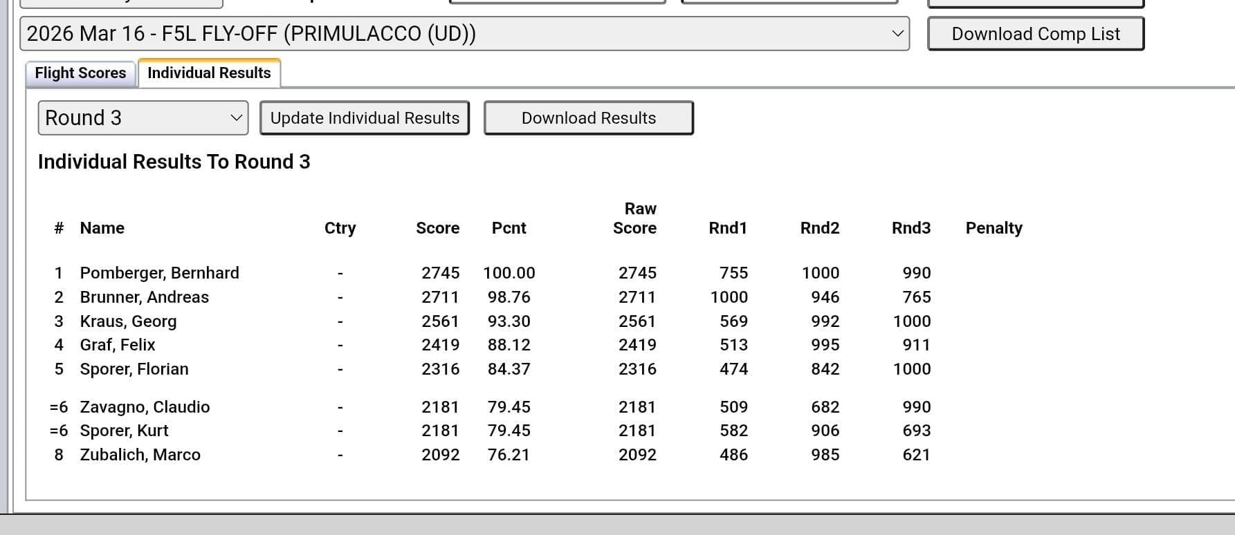 Ergebnis nach dem Flyoff: